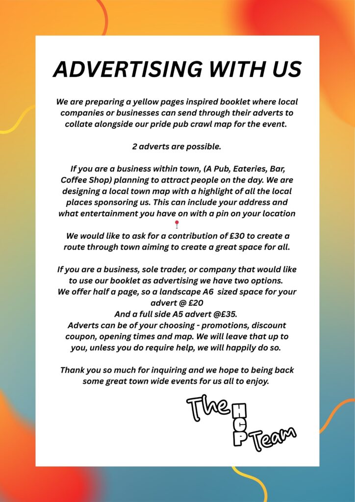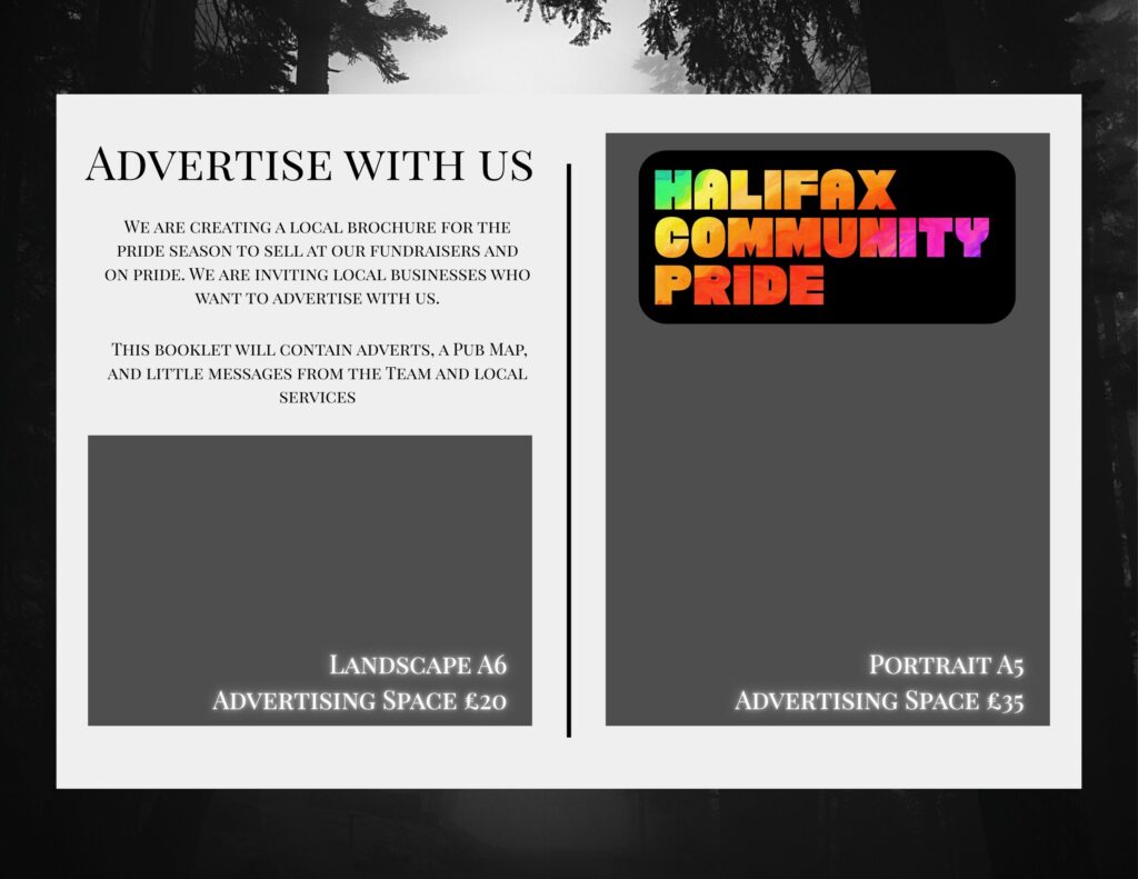 If you are interested in advertising with our brochure and are a local business or if you are interested being a sponsor for this event, please get in touch via halifaxcommunitypride@gmail.com
